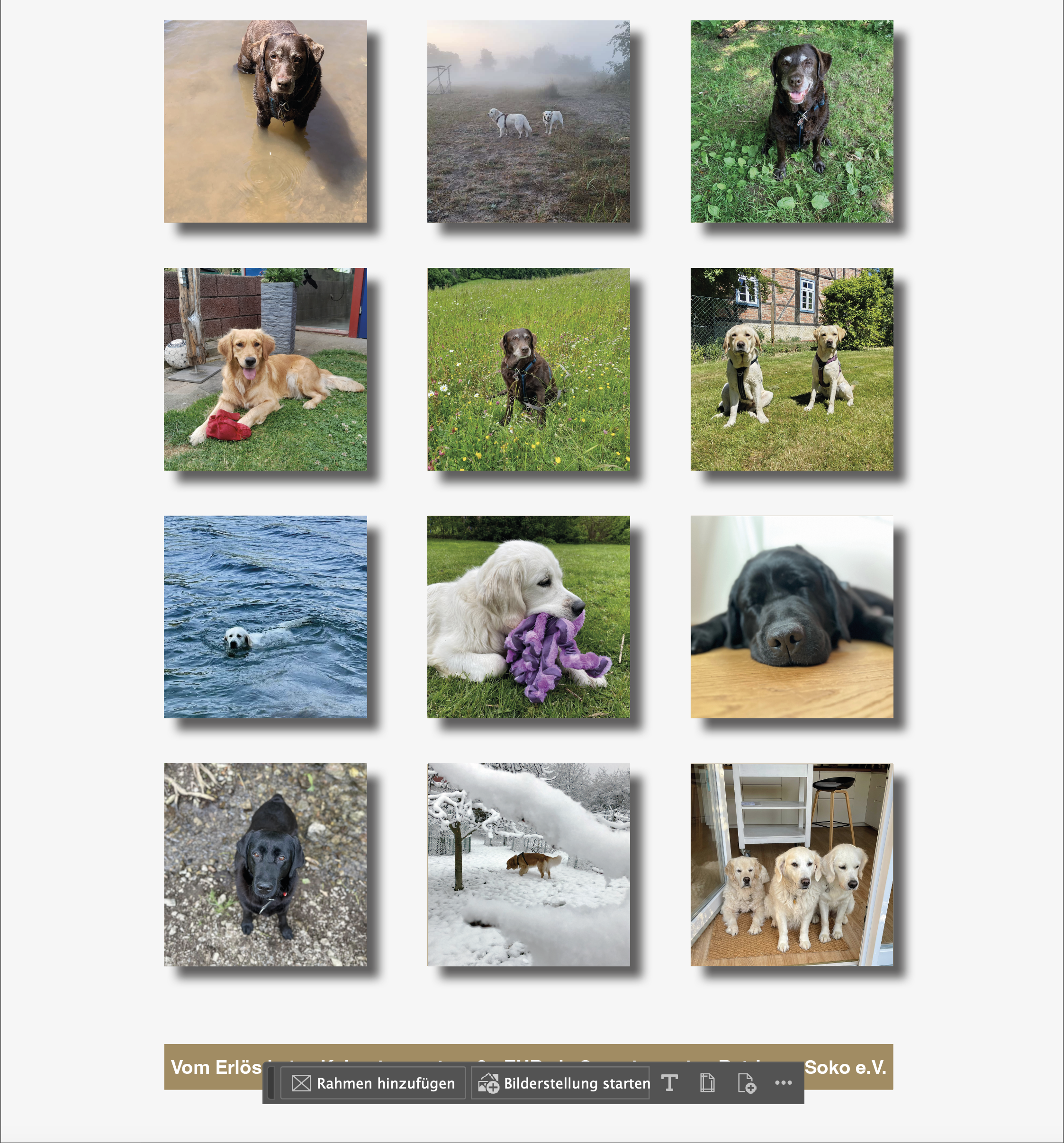 Mit Deckblatt, 12 Monats-Kalenderblättern mit einigartigen Hundebildern des Retriever Soko - Teams und Übersichtsseite. Fotodruck auf hochwertigem 130g-Papier mit glänzender Oberfläche.